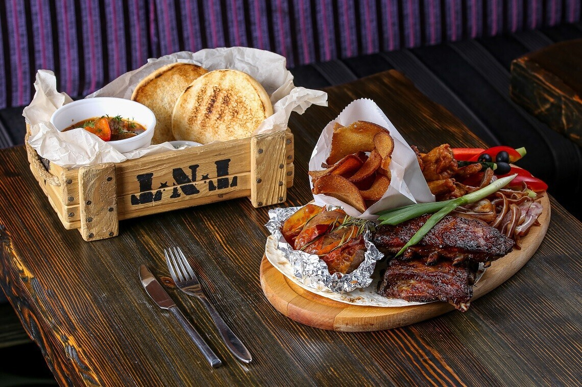 1. «Добраброды» — ржаной хлеб с лососем, говядиной и сельдью