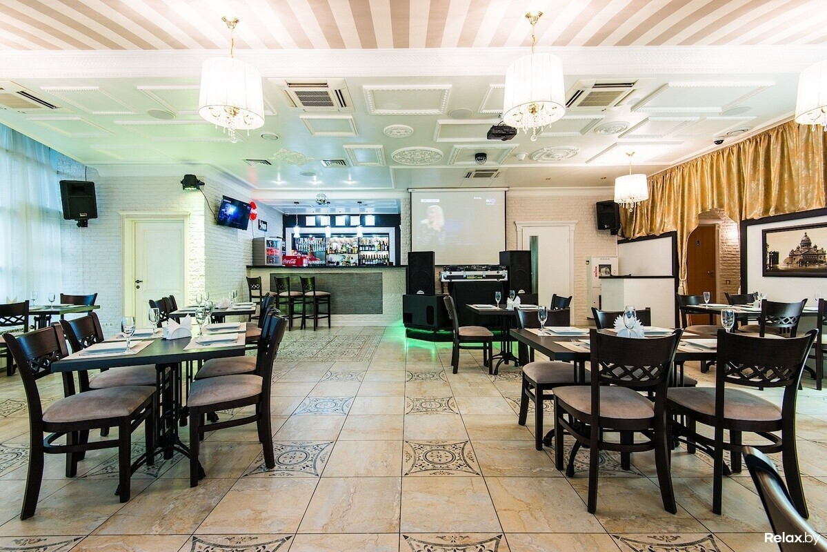 Пятое место занимает ресторан в самом сердце Минска. В нем три просторных зала в одном стиле. Два из них предоставлены курящим гостям. Меню может похвастаться салатом «Цезарь с соусом чиприани» (273 грамма) за 19 рублей и пастой «Карбонара» (218 граммов) за 16 рублей. В предложениях также есть стейки, морепродукты, суши и многое другое. С 12:00 до 16:00 в заведении действуют «Счастливые часы» ― на основное меню гостям предоставляется скидка в 30%, а с понедельника по субботу с 20:00 до 23:00 гостей ресторана ждет живой акустический звук.