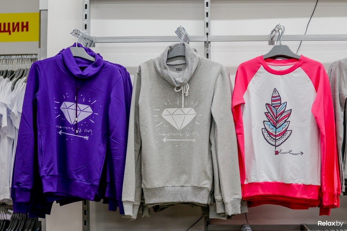 Итак, как мы уже сказали, 50% здешнего разнообразия — одежда, а именно — качественный трикотаж (из 100-процентного хлопка) для всей семьи. То есть без труда удастся собрать базовую основу для гардероба дешевле, чем в большинстве торговых точек с одеждой в Минске. Прямо сейчас, уверяют представители, компания находится в активном поиске свежих поставщиков: ассортимент одежды, несомненно, скоро расширится и станет интереснее.