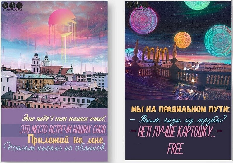 Сначала Иван пробовал рисовать необычное небо над Минском, делая его «космическим». На работе у парня было много свободного времени, поэтому он вплотную занялся проработкой видов.