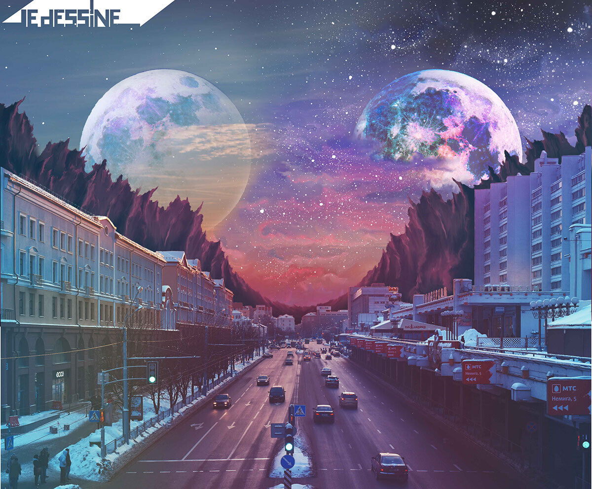 Сначала Иван пробовал рисовать необычное небо над Минском, делая его «космическим». На работе у парня было много свободного времени, поэтому он вплотную занялся проработкой видов.