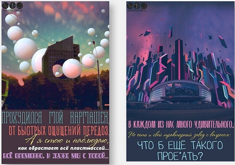 Минчанин Иван Тройнич уже не первый год изображает Минск футуристическим. В его работах привычные городские виды становятся необычными и фантастическими.