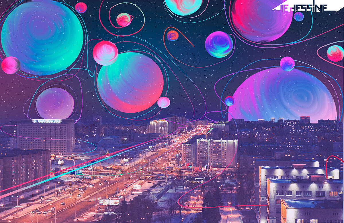 — Идей много. Но я хотел уже закрыть концепцию по созданию футуристических коллажей. Буду считать законченной эту идею после крутой выставки. Есть куча идей по оформлению пространства, где будут находиться работы, много приемов, искривляющих пространство, которые способствуют полному погружению в работы. Думаю, что добавятся картины, которые я напишу от руки. Но, наверное, это случится в той стране, где будет больше фидбэка и выставка привлечет больше внимания.