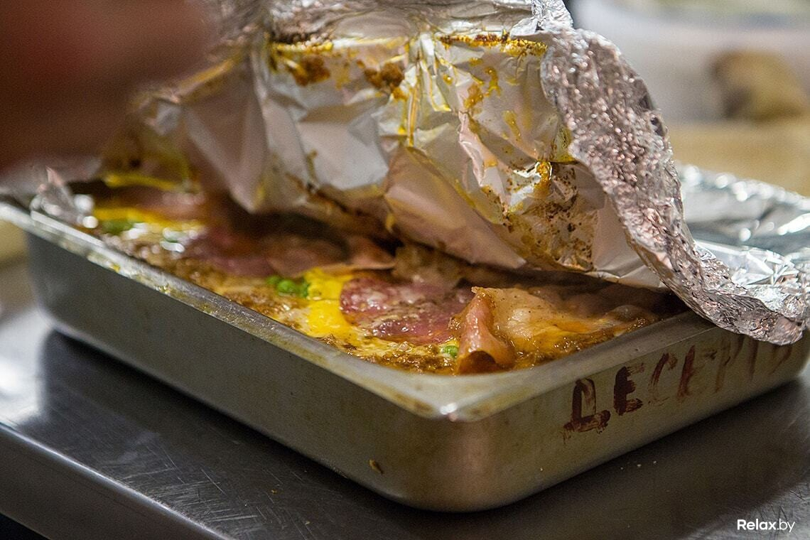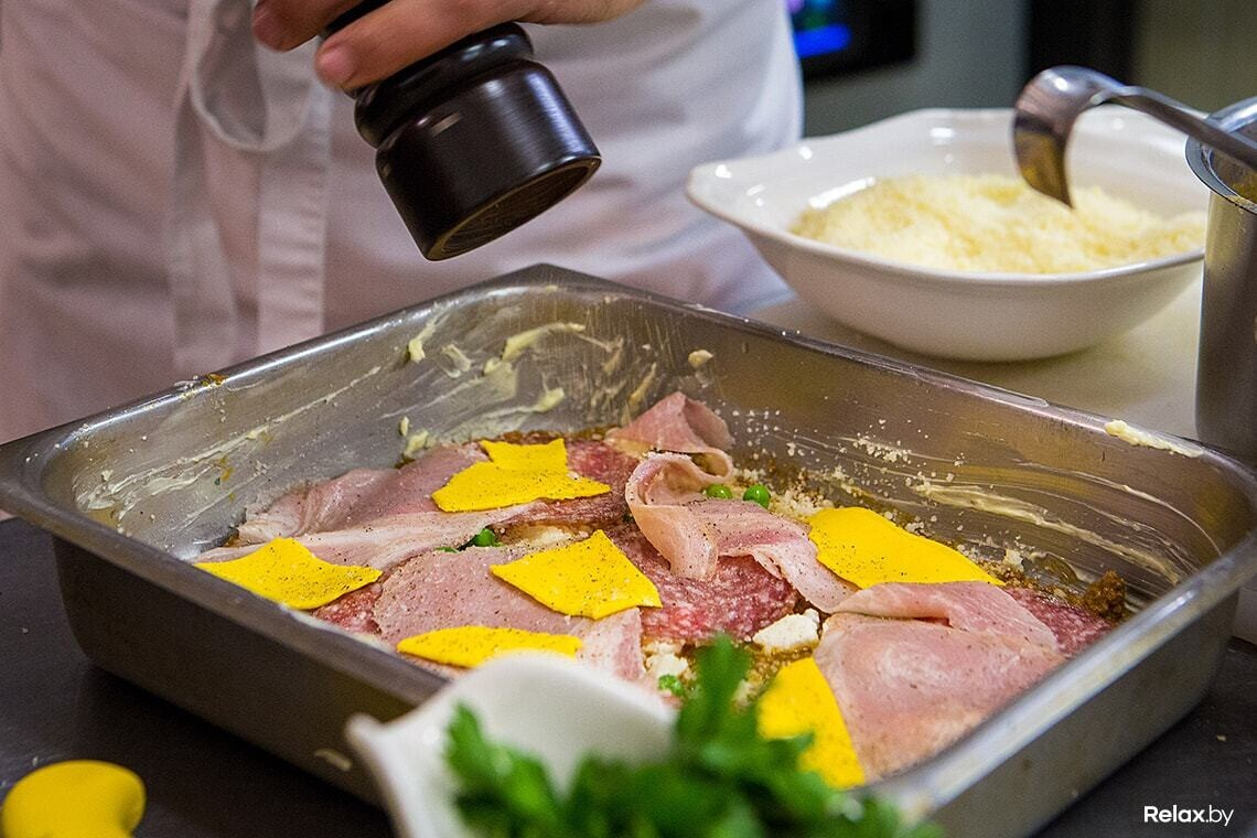 ― В какой последовательности укладывать ингредиенты ― неважно, ― улыбается Иньяцио. ― А вот тесто лучше класть накрест относительно предыдущего слоя и чуть прижимать.