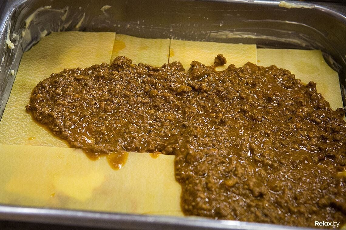 03 Третий шаг ― формирование лазаньи: укладка ингредиентов в слои.