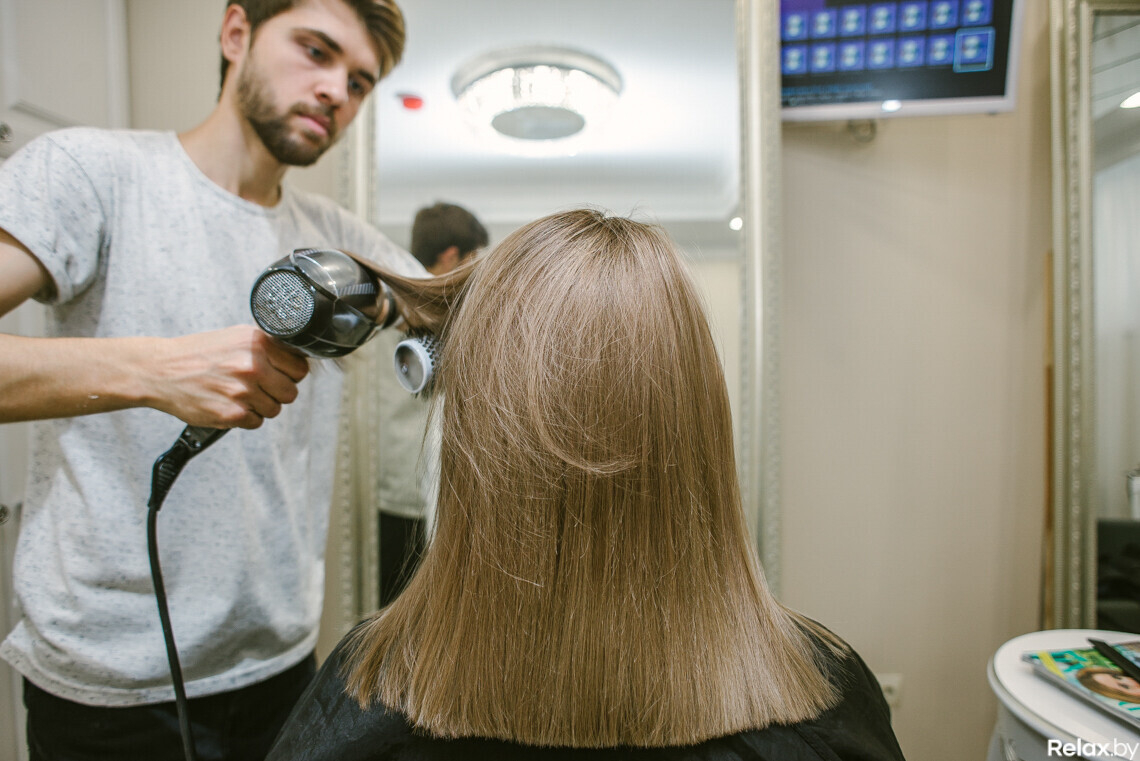 — Мы избавимся от блонда, можешь с ним прощаться, — с улыбкой говорит мастер. — Волосы приведем к более натуральному оттенку, который будет соответствовать естественному типу внешности. Также обрежем длину, чтобы волосы были чуть ниже ключиц. И, я думаю, сделаем прямую челку.