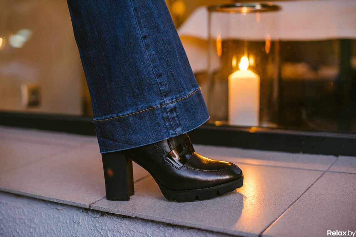 Стилисты также подбирают подходящую обувь. Варианты находятся в магазине «Эконика». Здесь останавливаемся на нюдовых туфлях, ботильонах и полуботинках — все точь-в-точь к выбранной одежде.