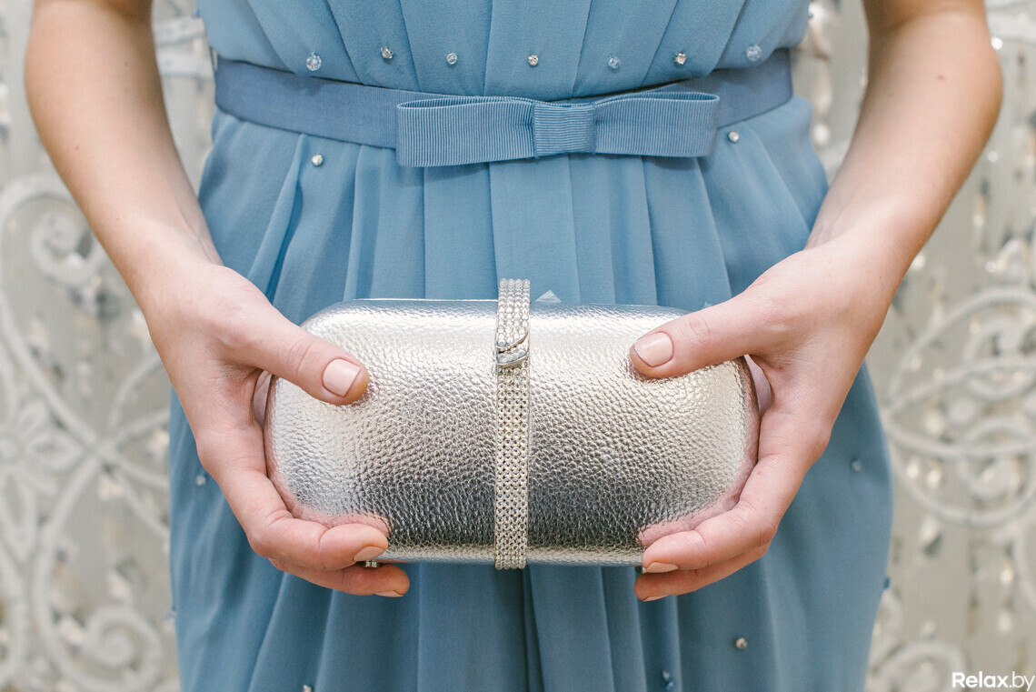 — Не хотелось перегружать образ сложными аксессуарами, поскольку декора на платье вполне достаточно для эффекта праздничности, поэтому добавили лишь лаконичный серебристый клатч и негромоздкие, но нарядные серьги.