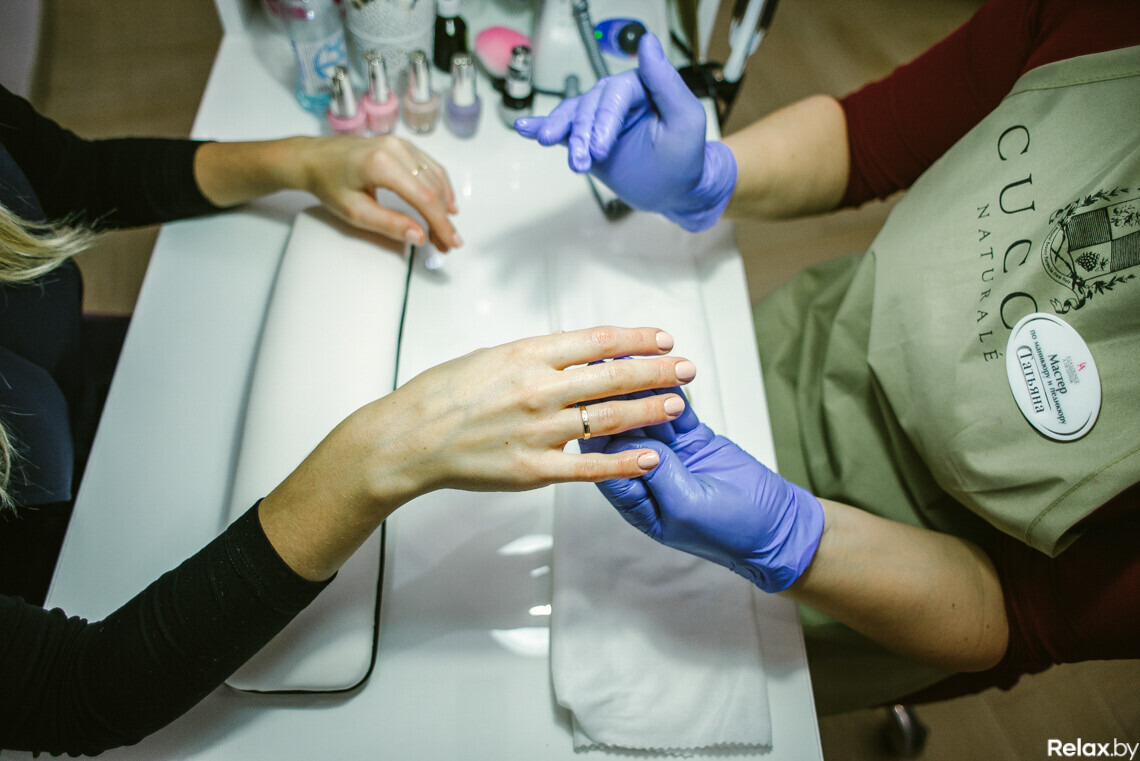 Отправляем девушку на маникюр. Ей сделают универсальный аккуратный вариант со светло-розовым лаком, который подойдет к любому образу.
