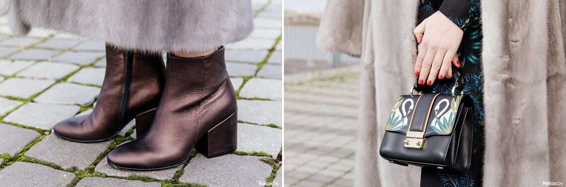 — В Минске нередко проходят предновогодние фэшн-мероприятия: показы новогодних коллекций, открытия бутиков и не только. Если хочется быть и модной, и торжественной, то, прежде всего, надо знать, что коктейльное платье с повседневными сапогами — не выход, это не модно (да и не нарядно). В рамках праздничного мероприятия, а особенно модного, будут уместны и шпильки, и босоножки на голую ногу. Даже в сочетании с шубой.