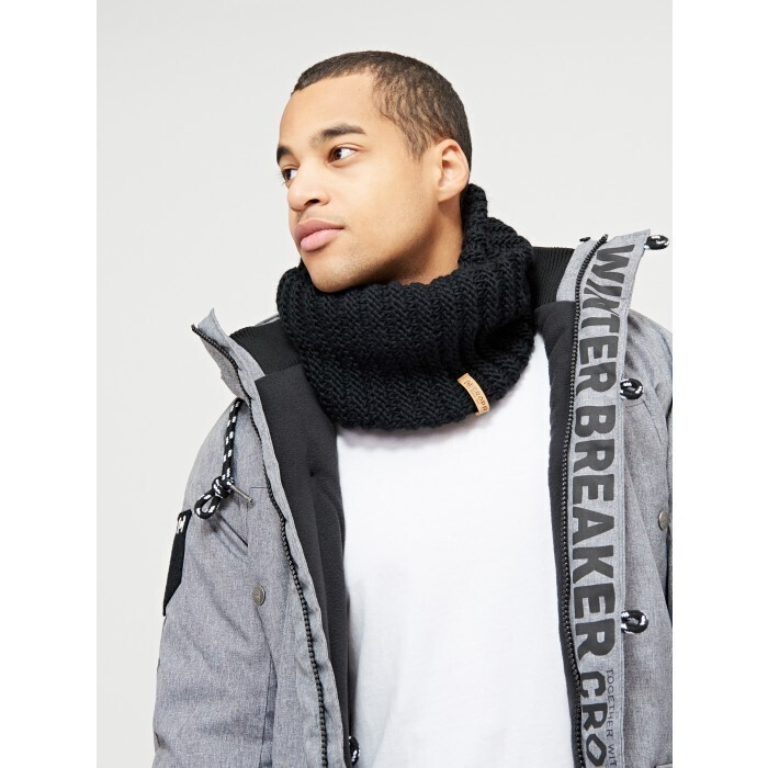 Объемный шарф может стать ярким акцентом или просто теплым и удобным аксессуаром в мужском образе. Лучше всего он сочетается с пуховиками, парками и кожаными куртками.