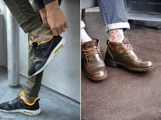 Можно не отказываться от укороченных зимних моделей джинсов, но при этом сохранять здравый смысл и не щеголять голыми лодыжками. Если вы решили отдать предпочтение ботинкам или кроссовкам, надевайте носки в цвет обуви. Яркие носки нужно выбирать с умом, так, чтобы они дополняли образ и подчеркивали смелый стиль.