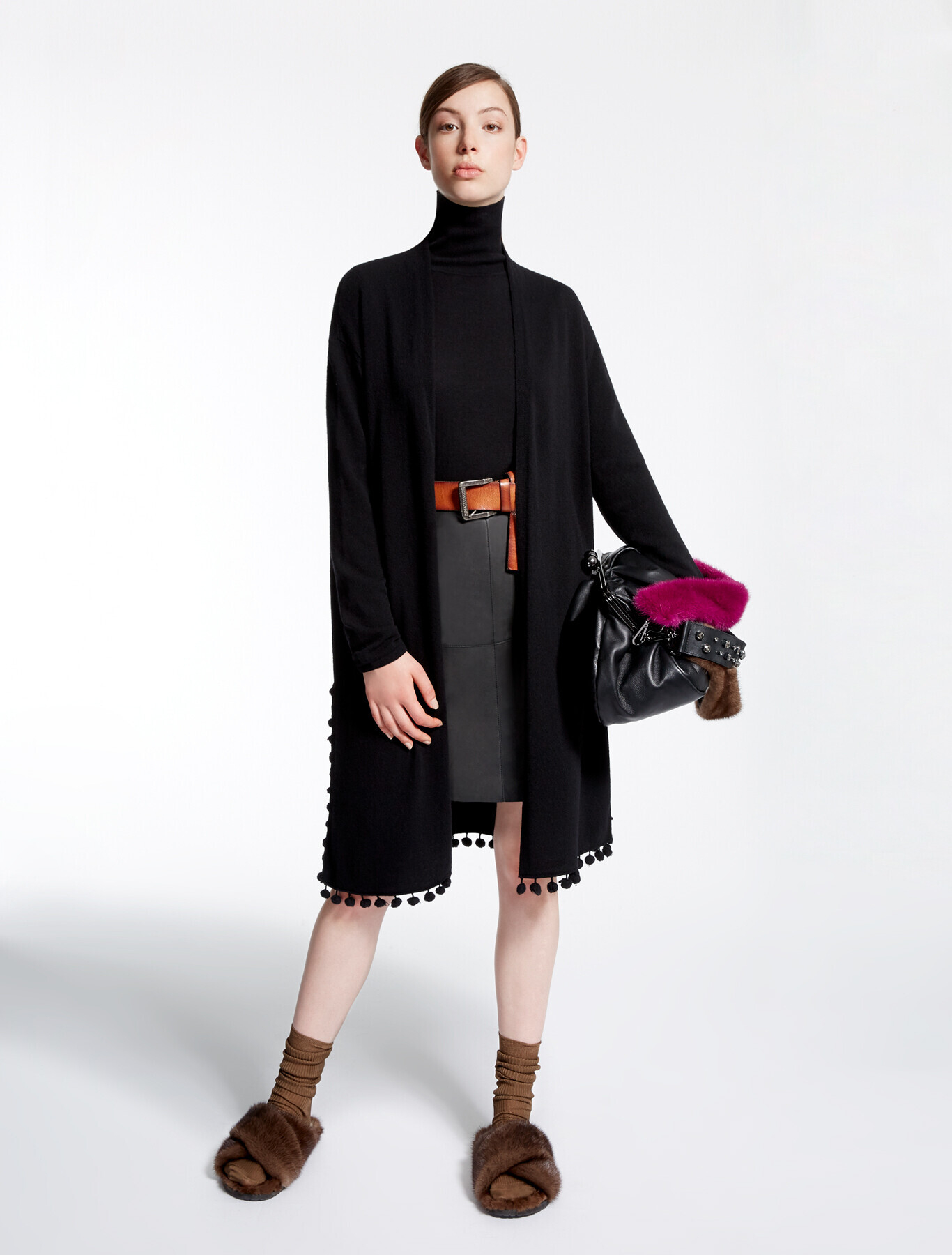 Нельзя обойти стороной важный для холодной погоды аксессуар — шарфы. Такая модель точно согреет в самые лютые морозы. Лучше всего меховой шарф сочетается с пальто и удлиненными кожаными куртками.