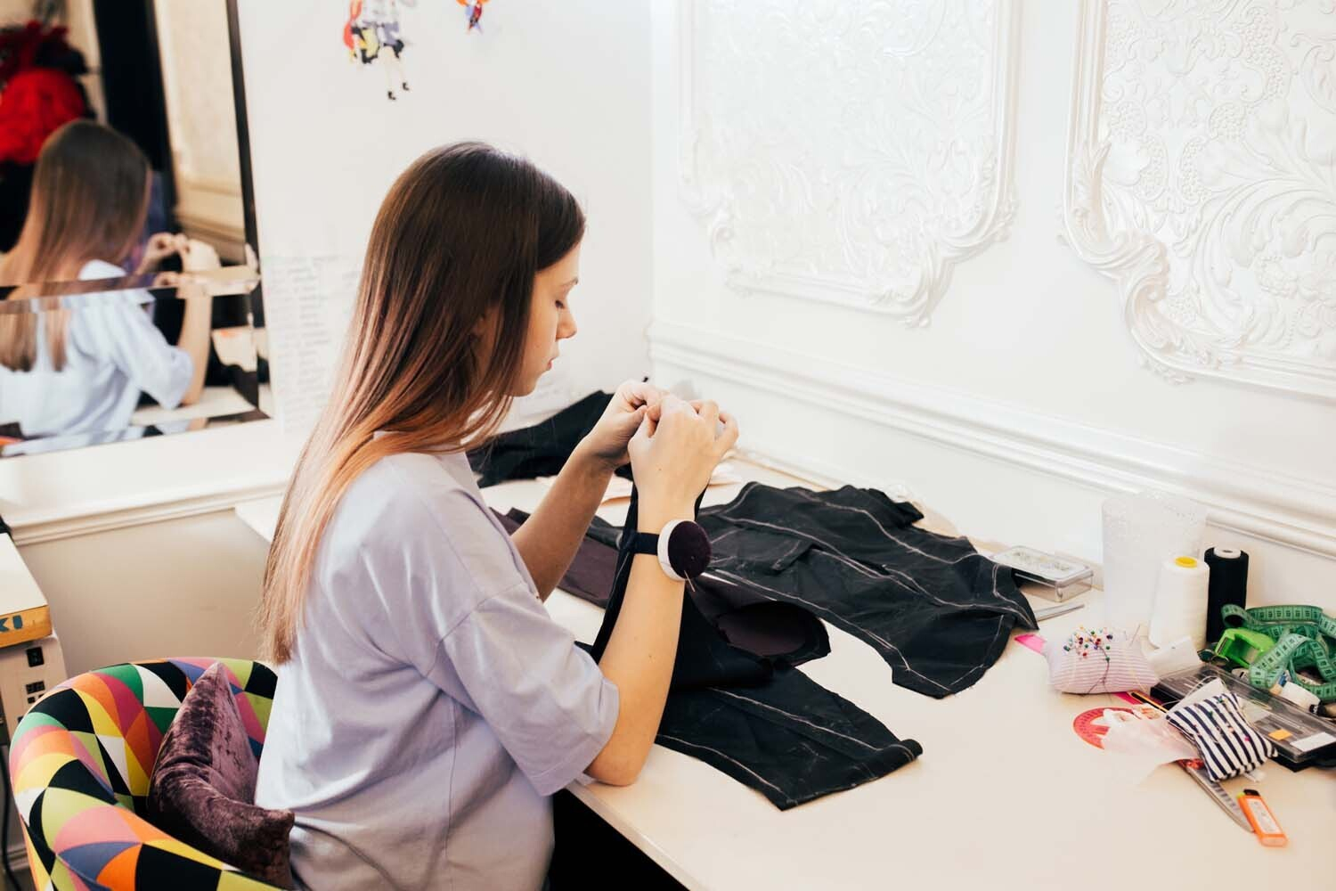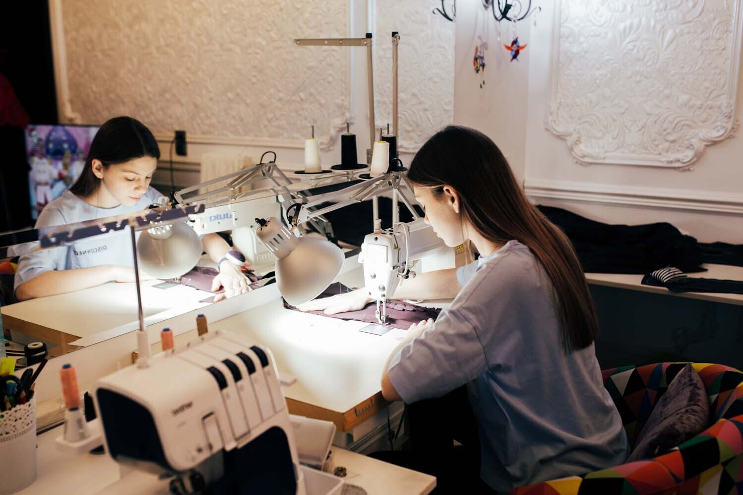 — Я умею шить, но не на таком уровне, как Саша. Могу прямые строчки сделать, шторы пошить, но не более того. Да, в доме всегда была машинка, но дизайнером никогда не хотела быть. Я не такая усидчивая, как Саша: очень быстро остываю, особенно, если не очень получается.