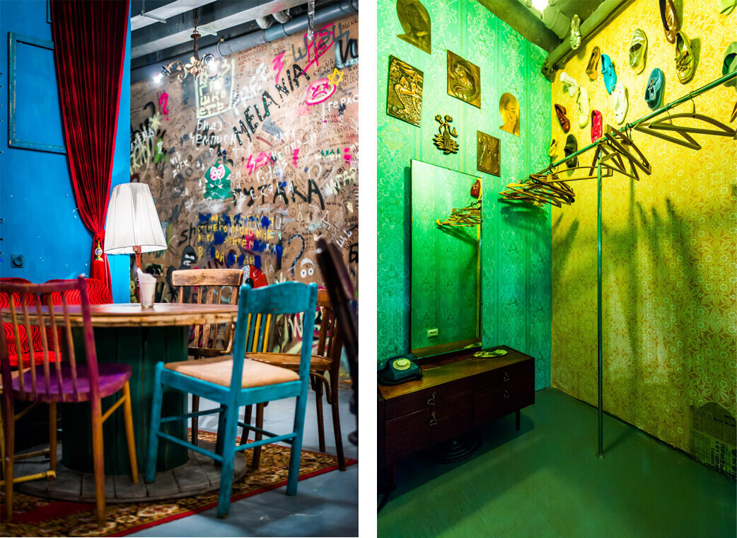 — Вещи для дизайна интерьера мы собирали по всей стране: через знакомых, друзей, бабушек и дедушек. Мы искали их на дачах, торговых площадках, через объявления в соцсетях. Все это по несколько раз привозили в бар и увозили целыми машинами.