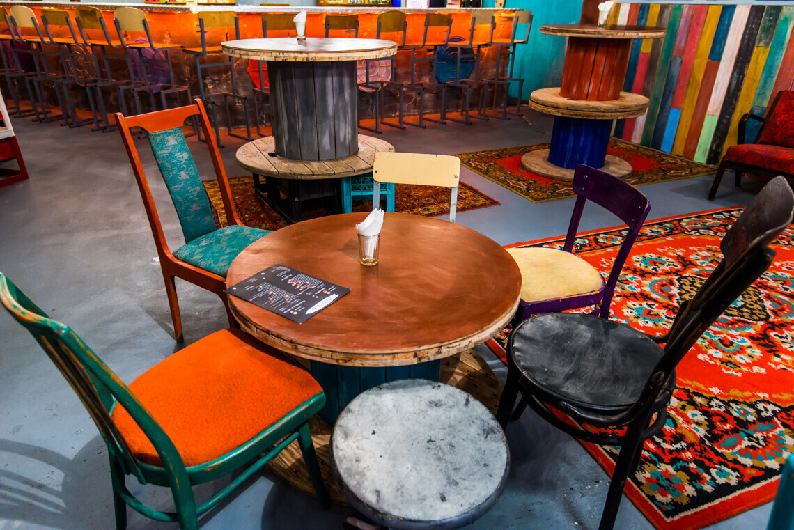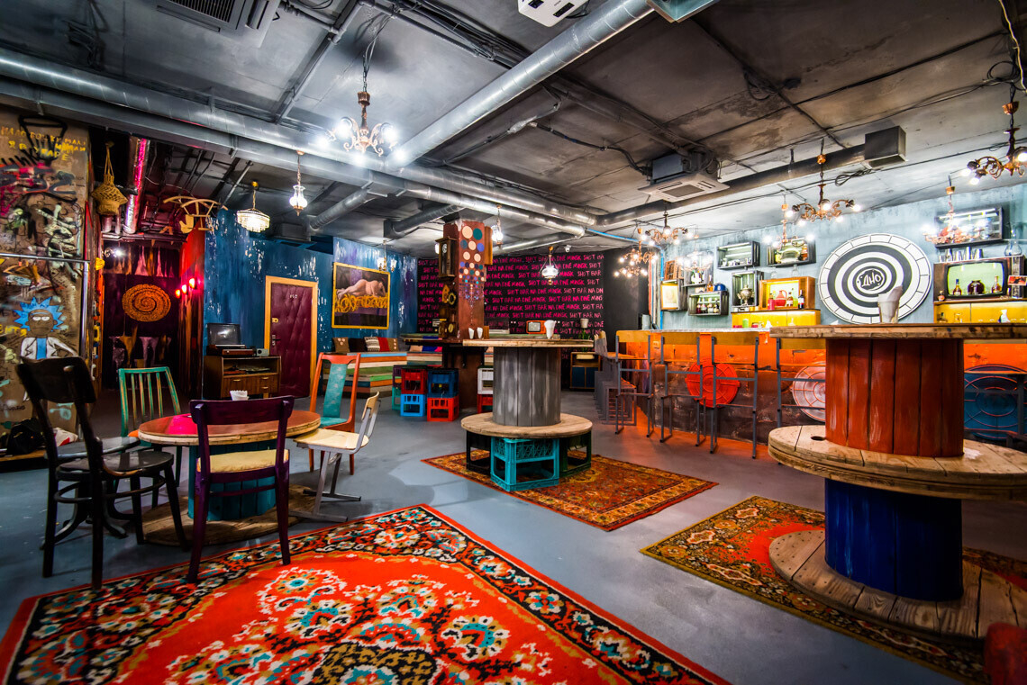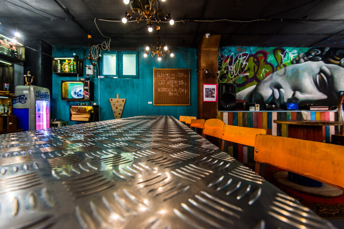 Концепция «интерьера из хлама» сделала наш бар не похожим на другие. Во многом благодаря старым предметам обихода, знакомым каждому с детства.
