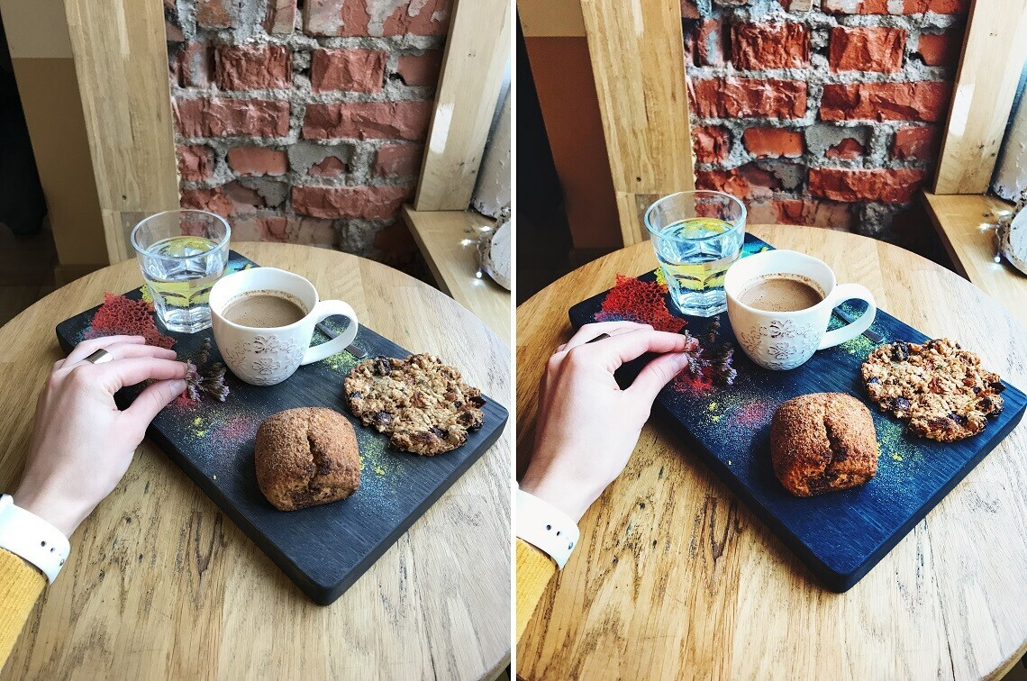 Если в кафе искусственный атмосферный свет, то тоже можно попробовать. Сейчас в заведениях все уже нормально относятся к тому, что посетители снимают свою еду. Так что если вы поставите тарелку на подоконник, никто не удивится. Можно даже вынести блюдо на улицу ради хорошего кадра.