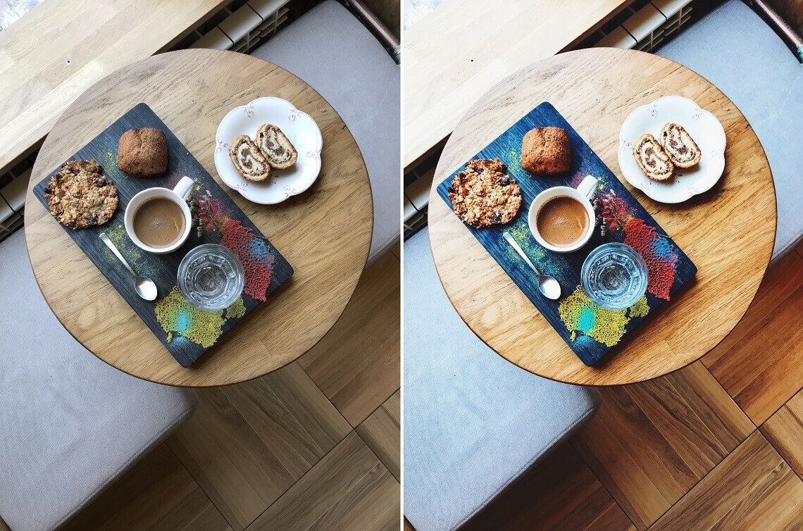 Важно обратить внимание на фон. Даже если блюдо смотрится отлично, его можно испортить влезшими в кадр ненужными предметами. Или, наоборот, для завершенности композиций, возможно, потребуется добавить дополнительные элементы: салфетницу, сахарницу, приборы или любую другую деталь.