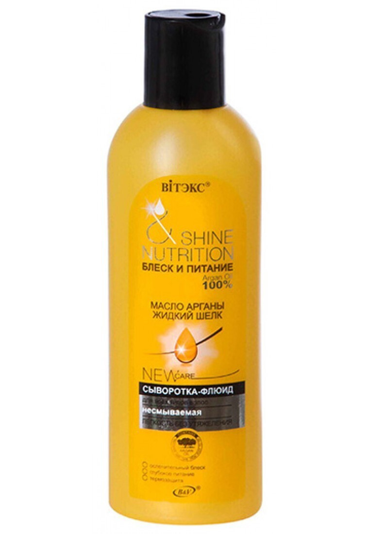 Сыворотку-флюид для волос «Масло арганы и жидкий шелк» я как-то купила сама. Мне понравилось, что, в отличие от многих несмываемых продуктов, она нежирная и очень хорошо приводит в порядок даже мои похожие на мочалку волосы.