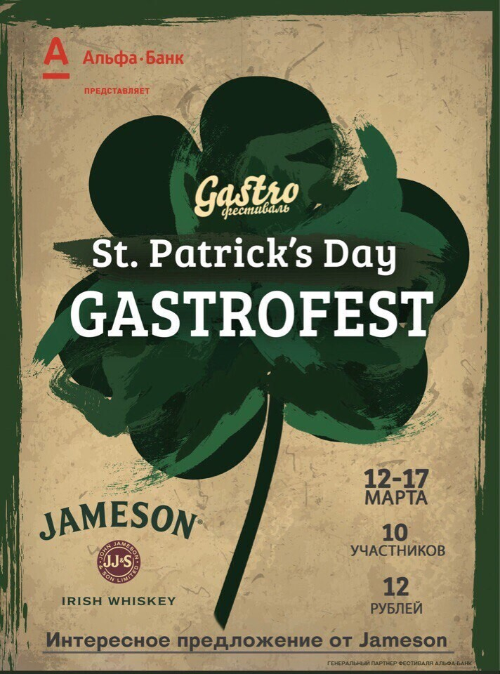 17 марта во всех заведениях-участниках Гастрофеста пройдут вечеринки-празднования Saint Patrick’s Day.