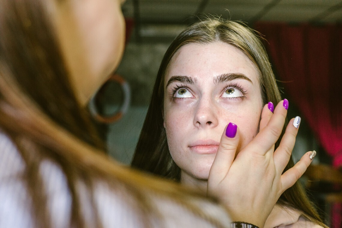 — Аня — девушка-зима. Холодная, контрастная, выразительная — это все про нее. У модели густые ухоженные брови и яркие длинные ресницы, поэтому акцент мы будем делать на губах. Кожа у Ани сухая, требует увлажнения и использования кремовых текстур. Маскировать высыпания мы будем плотным матирующим тоном.