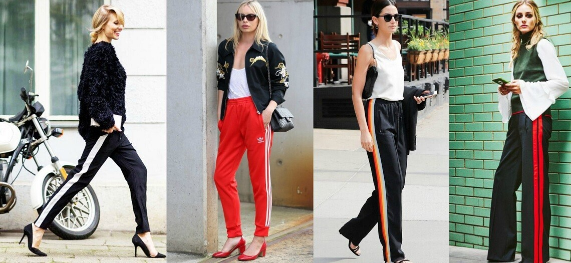 Брюки с лампасами, которые девушки стали носить не только с кедами и кроссовками, но даже с классическими лодочками и босоножками на шпильках, потеряли популярность. Эту тенденцию изначально считали довольно спорной и рискованной, поэтому долго она не продержалась. Все же летом приветствуются более женственные и романтичные варианты.