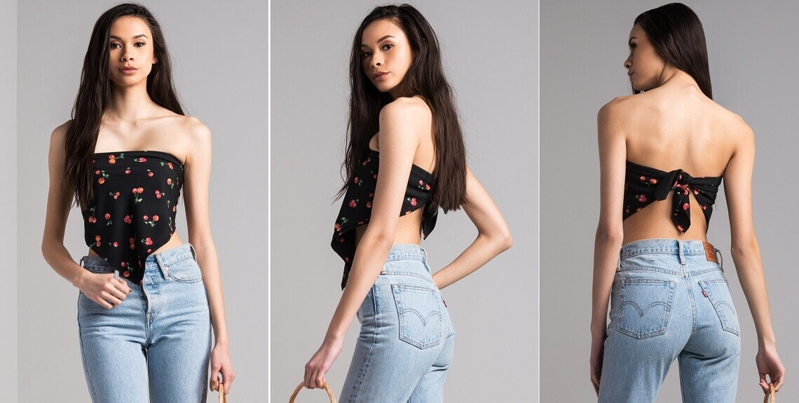 Это небольшие текстильные топы, которые завязываются на груди спереди. Правда, лучше обратить внимание на однотонные варианты, чтобы активный принт не отвлекал внимание от остальных вещей в образе. Кроме того, нужно с пристрастием выбирать размер таких топов: даже слегка маленький, он будет выглядеть, скорее, как купальник, а большой не сможет выгодно подчеркнуть грудь.