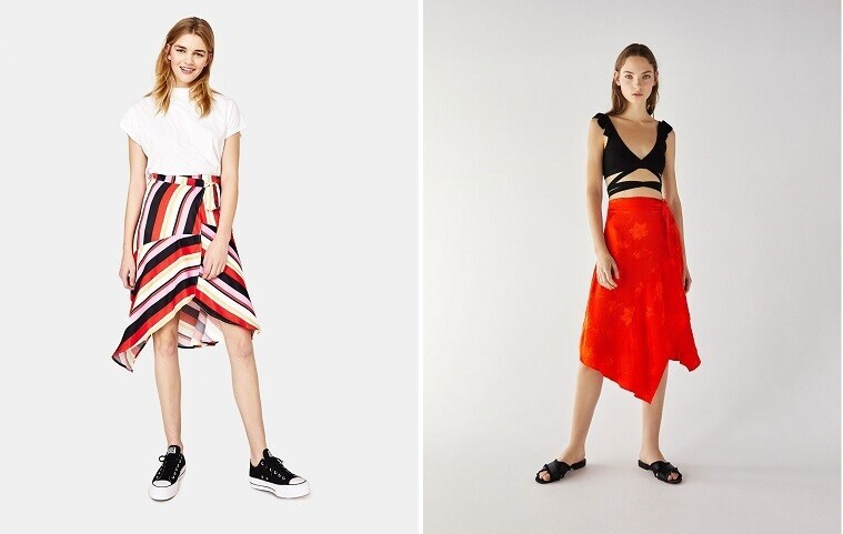 Активная полоска на юбке с запахом, ярко-алая длины миди с цветочным принтом и невероятная цвета охры с крупными пуговицами посередине — именно такими моделями в этом сезоне богаты магазины бренда. Девушкам здесь предложат все: от привычной классики — джинсовой мини с завышенной талией в духе 1980-1990-х — до эпатажных асимметричных моделей кричащих оттенков. Чтобы грамотно сочетать такие варианты в гардеробе, потребуется немного находчивости, но зато результат точно будет того стоить.