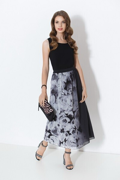 Белорусский дизайнер тоже представил очень женственный вариант юбки, которая отличается многослойностью и прозрачной текстурой. Верхняя удлиненная юбка лишь визуально создает объем и придает летящую грациозность. В то время как основа остается традиционной и наделена флористическим принтом.