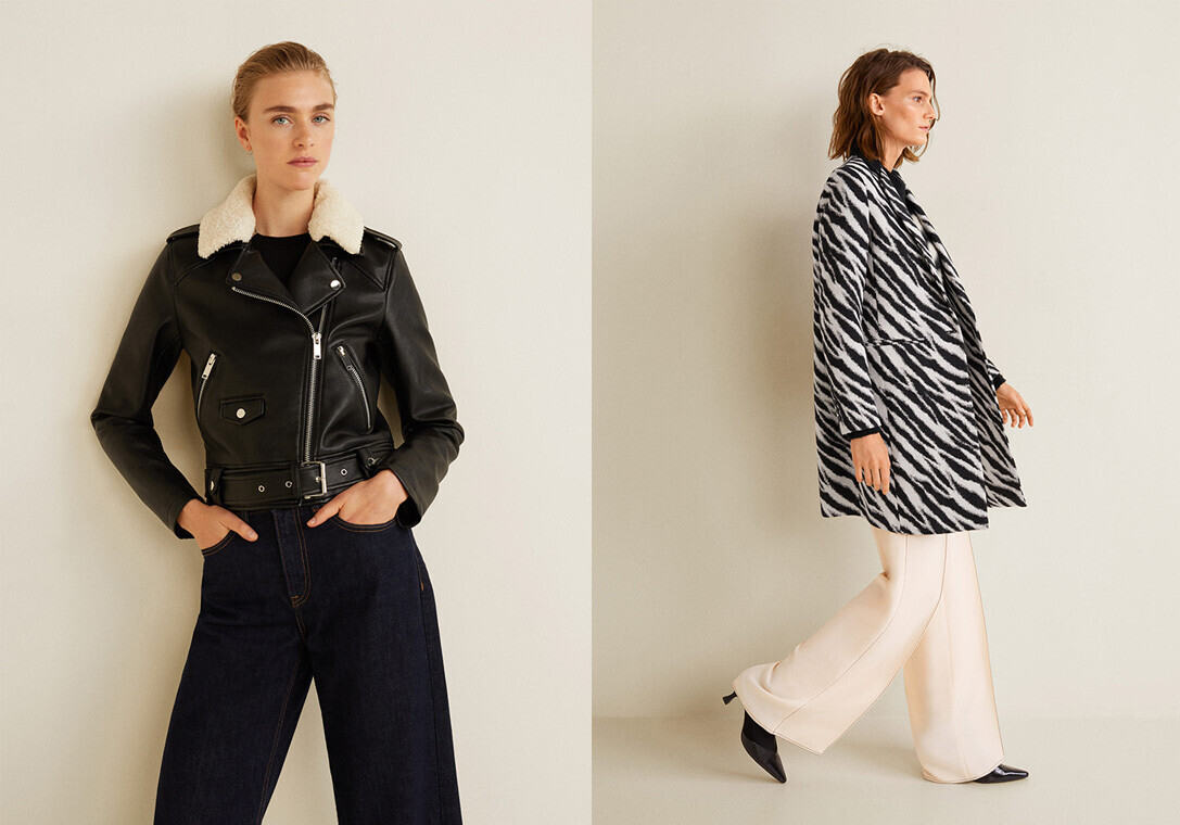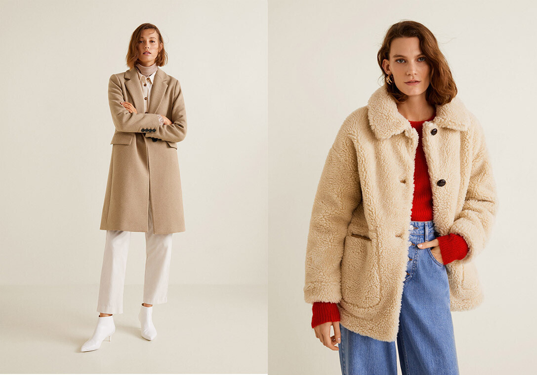 Бренд порадует своих поклонников пальто классического цвета camel, яркими дубленками из искусственного меха. Если вы следите за трендами, в осенней коллекции Mango найдете все, что искали: много клетки, животного принта и кожи.