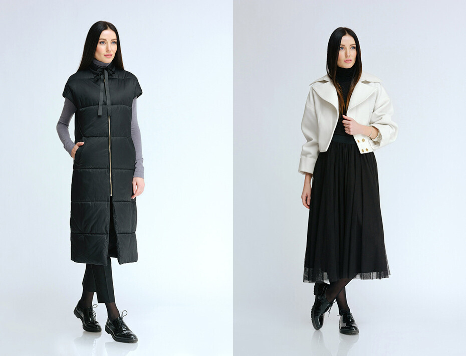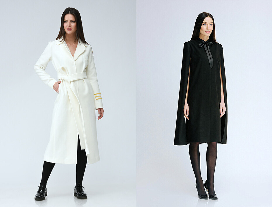 Молодой белорусский бренд модной одежды делает ставку на классических цветах — черном и белом — и акцентирует внимание на крое. Помимо классических пальто и курток, в ассортименте можно найти теплые жилеты и безоговорочно популярные в этом сезоне кейпы.