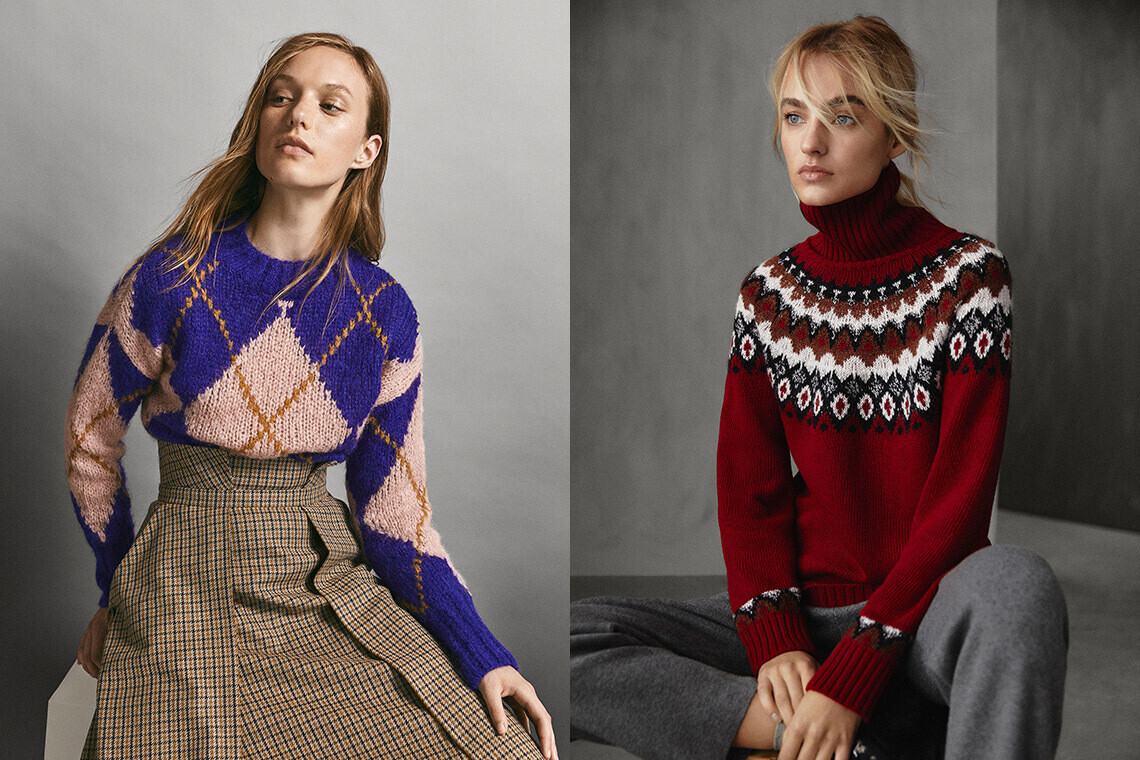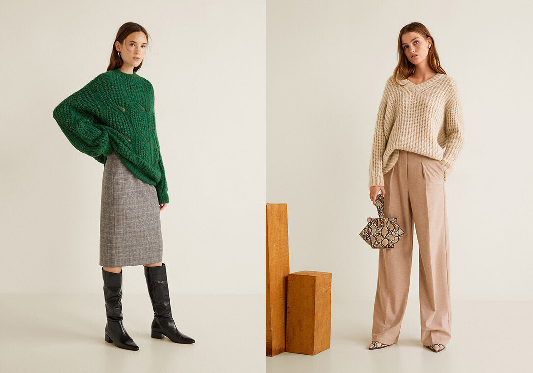 Ретромодели и геометрический принт — то, что стоит искать в новой коллекции трикотажа в Mango. Здесь царят oversize, рельефная вязка и насыщенные оттенки. Также найдутся варианты и для любителей универсального минимализма в одежде.