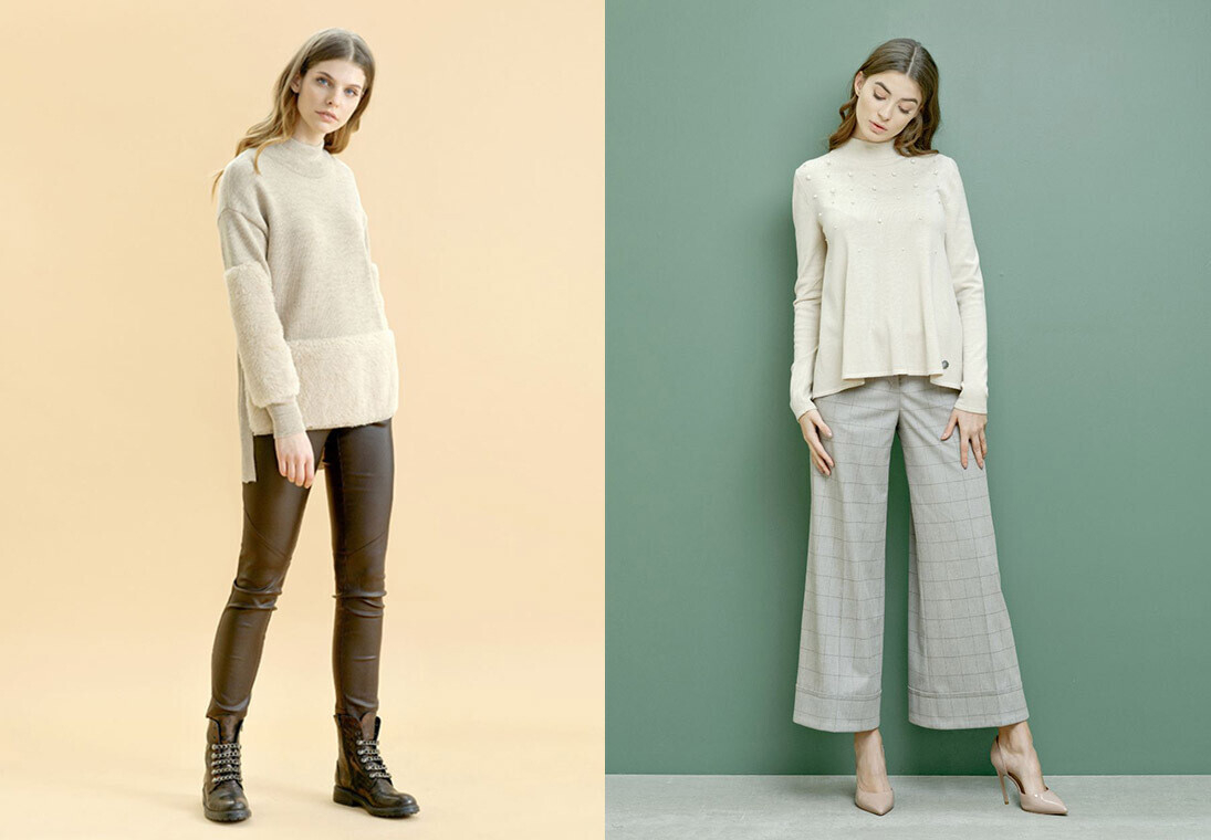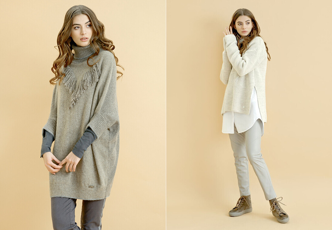 Sister’s в этом сезоне делает ставку на классику: джемперы с V-образным вырезом и водолазки впишутся в строгий деловой стиль. При этом модели с контрастными полосами послужат хорошим вариантом для разнообразия осенне-зимнего гардероба. В коллекции нашлось место и нежности мягких пастельных оттенков, которые только поддерживают ощущение уюта.