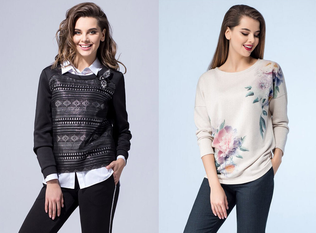 Если хочется чего-то нетипичного, а крупной вязке и свободному крою вы предпочитаете более изящные модели, можете присмотреть вариант в Belodejda.by. Цветочный принт, накладные карманы, элегантные модели — здесь легко подобрать вариант, который будет уместно выглядеть в офисе.