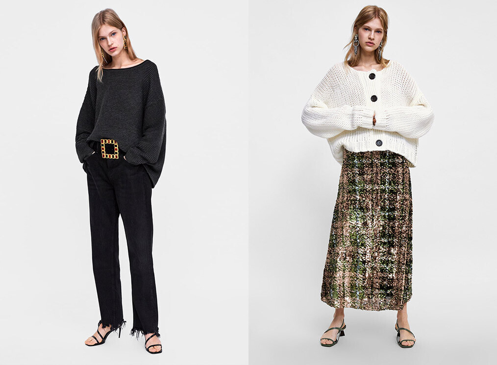 Zara демонстрирует в новой коллекции трикотажа мировые тренды нынешнего и будущего сезона. Уже сейчас стоит обратить внимание на модели с пайетками: весной-2019 этот элемент декора будет на пике популярности.