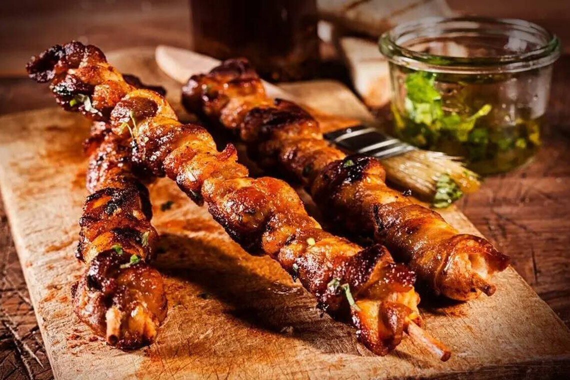Нежный и сочный шашлык из свинины с ароматом кавказских приправ и репчатого лука готовится в кафе на мангале. Кстати, официанты подают блюдо под лезгинку в национальных костюмах.