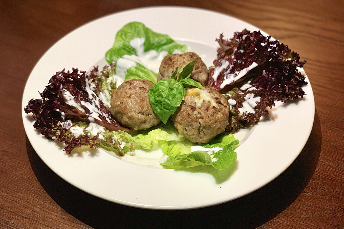 Рубленое мясо благородного оленя с моцареллой и базиликом подается в сливочном соусе на листе салата. Ингредиенты изначально обжариваются на сковороде, а после — доводятся в печи до полной готовности, что делает блюдо вкусным и полезным.