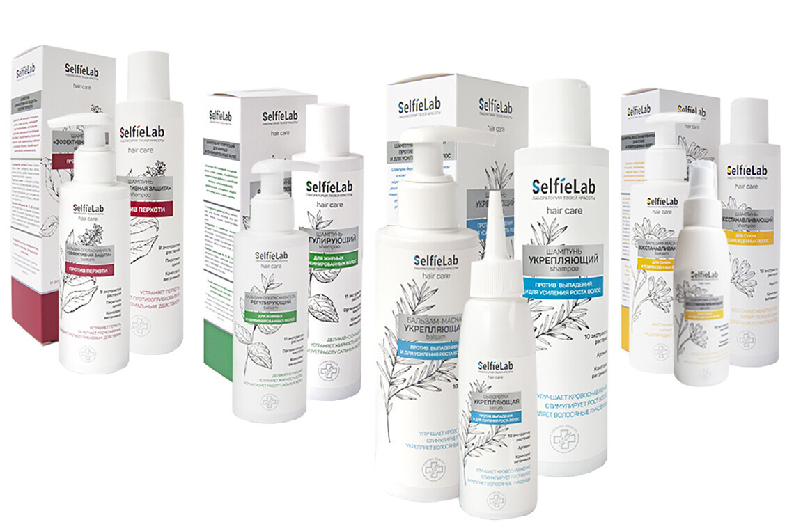 Укрепляющая линия SelfieLab направлена на борьбу с выпадением волос и стимулирование роста новых. Регулирующая — прекрасно подойдет обладателям жирной и комбинированной кожи головы. Для сухих и поврежденных волос лучше всего выбрать восстанавливающую серию. А если беспокоит перхоть, то с этой проблемой поможет справиться линия «Эффективная защита». В каждой линейке собран оригинальный фитокомплекс, активные компоненты и витамины.