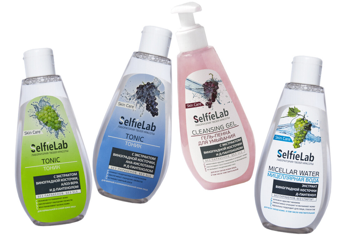 Новая очищающая линия от SelfieLab — это четыре продукта на основе экстракта виноградной косточки и Д-пантенола.
