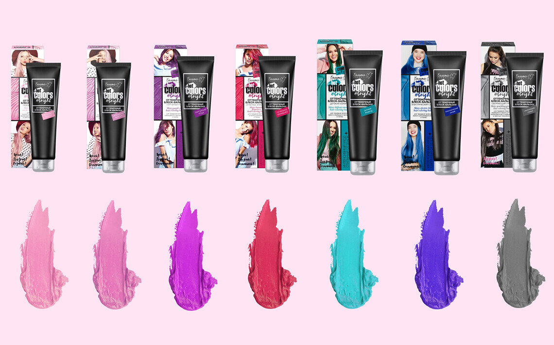 В линейке средства — семь разных оттенков: «Розовый жемчуг», «Неоновая фуксия», «Электрический синий», «Дерзкий изумруд», «Сверкающий графит», «Огненное фламенко» и «Пурпурная роза». Чем светлее исходный цвет, тем ярче и насыщеннее будет результат. Однако оттенки будут незаметны на темных волосах: брюнеткам рекомендуется предварительно осветлиться минимум до 8 уровня.
