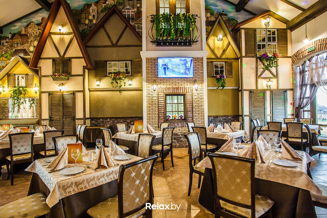Оформленное в стиле старинной английской улочки, кафе «М-отель» готово посоревноваться с интерьерами настоящих замков. Здесь предусмотрено достаточно места для танцев и конкурсов. Есть и специальная праздничная фотозона.