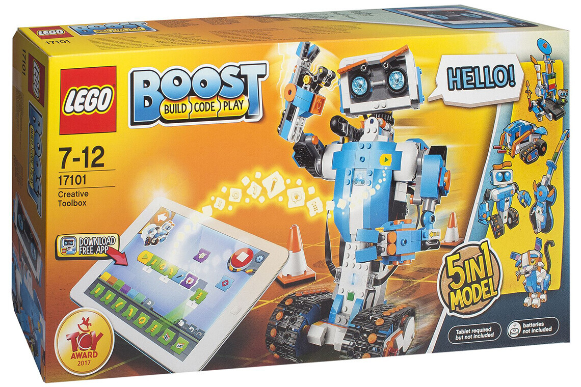 Набор LEGO Boost позволит вашему ребенку ощутить себя настоящим инженером, собрав и запрограммировав целых пять моделей: робота Верни, кота Фрэнки, гитару 4000, вездеход MTR-4, а также необыкновенный конвейер, который работает как автосборочная линия мини-моделей LEGO.