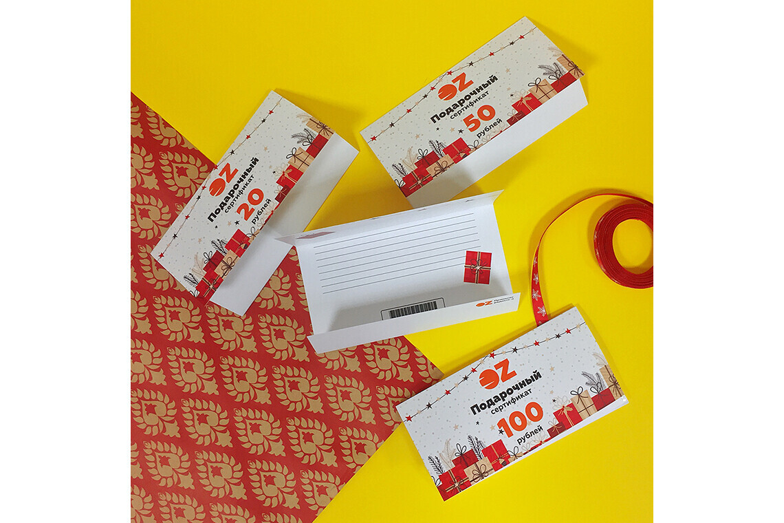 Сертификат — универсальный подарок, с которым сложно прогадать. Купить его, кстати, можно во всех магазинах сети, а также электронный — на сайте или в мобильном приложении. На выбор доступны три суммы: 20, 50 и 100 рублей.