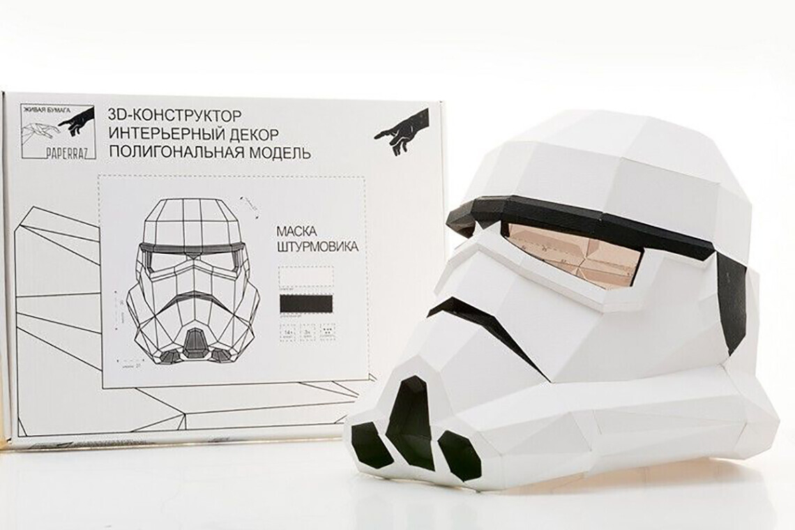 Бренд PAPERRAZ, известный своими оригинальными бумажными скульптурами, предлагает собрать маску штурмовика из знаменитой киноэпопеи «Звездные войны». Изделие выполнено из дизайнерского картона плотностью 220-290 г/м. Все детали вырезаны и пронумерованы, подготовлены линии сгиба. Готовую маску можно использовать в качестве декора дома или отправиться в ней на тематическую вечеринку.