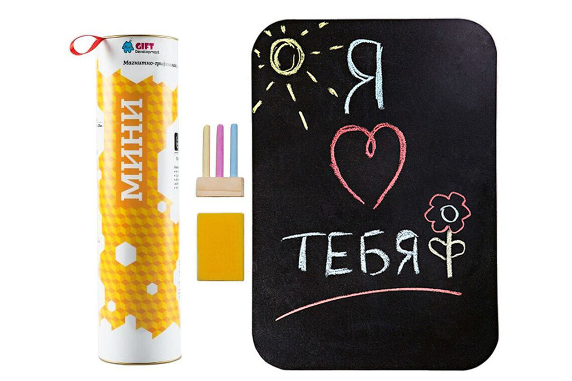 С помощью магнитно-грифельной доски, которая крепится на холодильник, можно оставлять напоминания родным о покупках, важных мероприятиях и праздниках, рисовать картинки и креативить, использовать ее как домашнюю школьную доску для решения задач и изучения языков. Писать на ней легко, используя для этого разноцветные мелки и специальные меловые маркеры, которые без труда стираются влажной губкой.