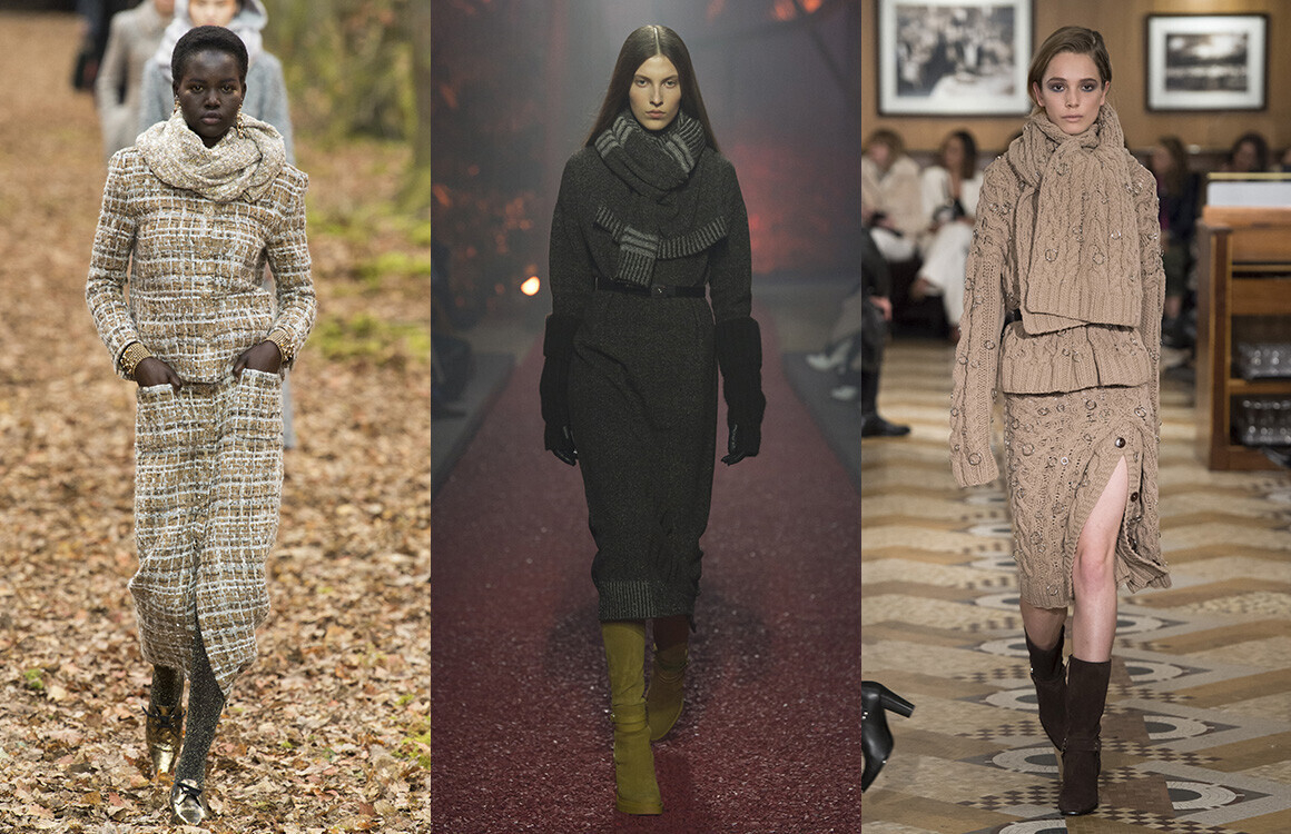 Один из самых горячих трендов в этом сезоне сочетает в себе комфорт и элегантность для зимнего образа, подходящего для нашей порой неласковой погоды. Подумайте о негабаритных деталях образа в виде теплых шарфов. Тренд также открывает дорогу трикотажным свитерам и платьям, накидкам и кардиганам.