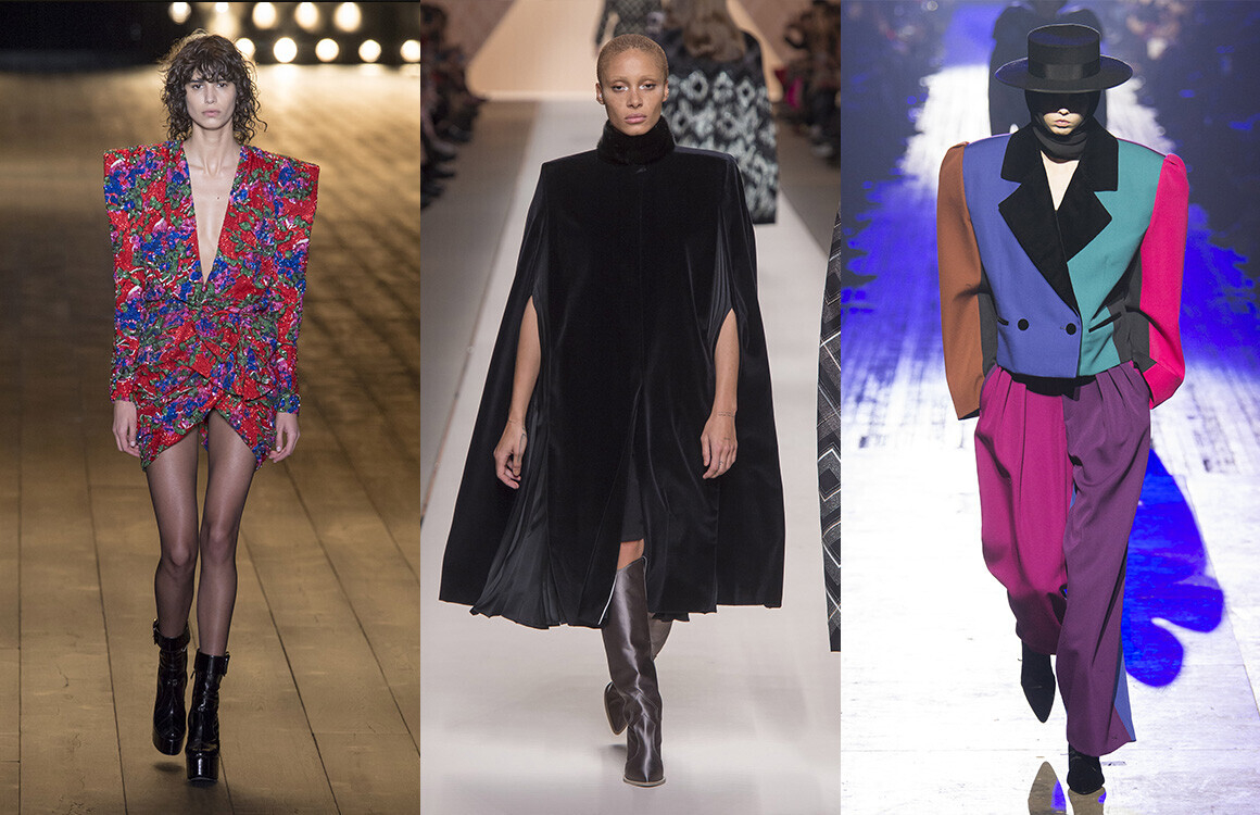 Мода продолжает возвращаться из 1980-х, и в этом году мы увидим тренд на широкие плечи. Все более экстремальные версии можно лицезреть на французских подиумах — вплоть до полного визуального искажения пропорций. Для повседневных вариантов подойдут и менее экстравагантные наряды: пиджаки с плечиками, блузы с объемными рукавами, платья с дополнительными воланами в области плеч.