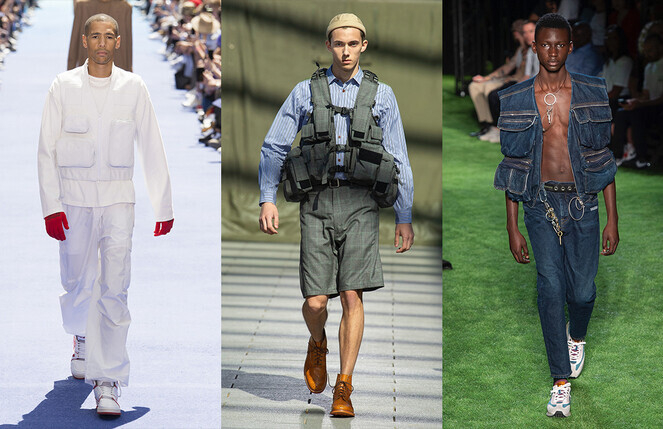 Обычные мужские жилеты входят в повседневный гардероб с нотами армейского ношения благодаря дизайну с несколькими карманами, как это видно у Off-White, Louis Vuitton и Junya Watanabe. Тренд не только стильный, но еще и практичный. Правда, вовсе не обязательно наполнять карманы всем, что попадется под руку, можно просто пристроить в них бумажник, телефон и другие подручные мелочи — главное, чтобы визуально карманы не оттягивались.