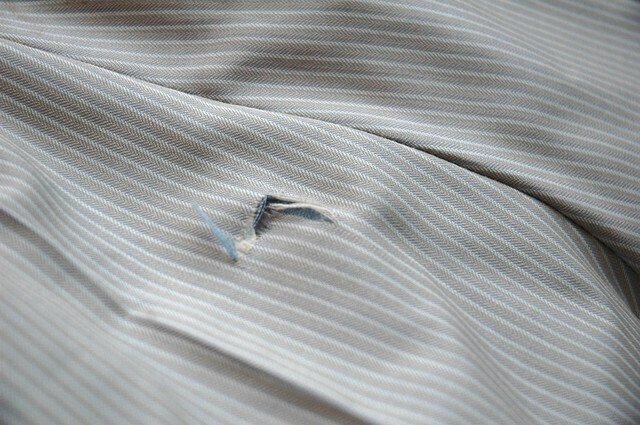 Далее — состояние товара. Не надейтесь, что пятно отстирается, а «если дырочку зашить — будет не видно». Поверьте, если бы дефект было возможно легко и незаметно устранить, от него бы избавились ранее и ценник на вещь был бы другим. Перешив/ушив/починка, сделанные в ателье, добавят к стоимости вещи минимум 10 руб, а может, и все 50. Плюс потраченное время на ожидание. Подумайте хорошенько: оно вам надо?