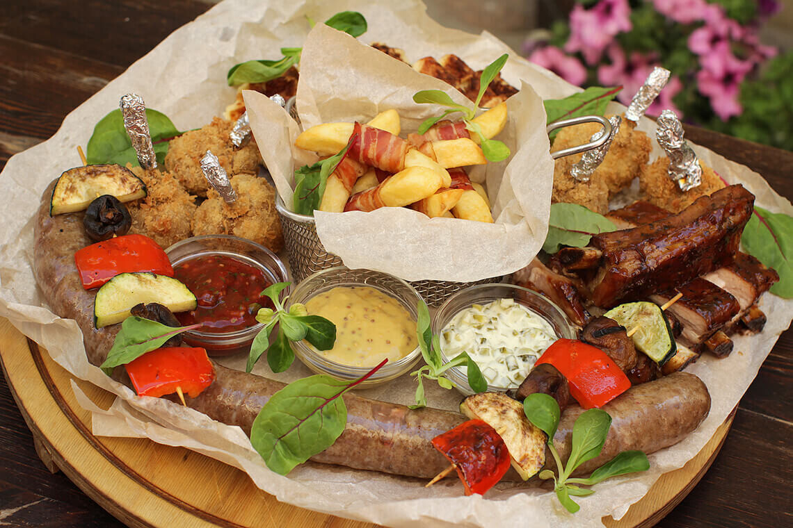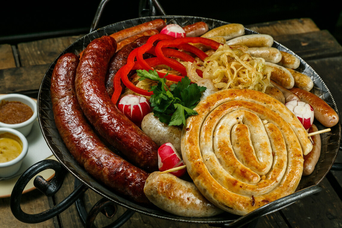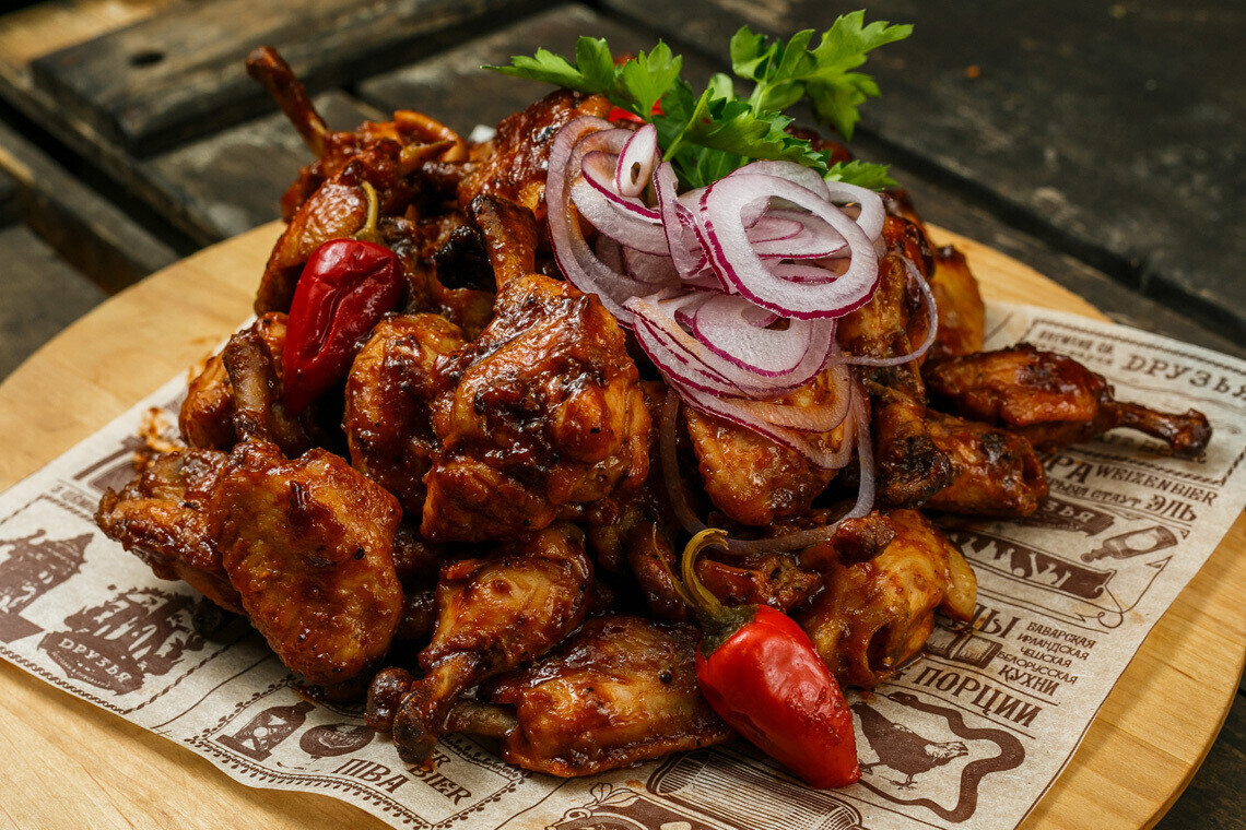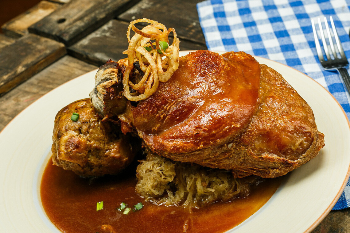 Что заказать: ассорти колбас, свиную рульку швайнхаксе, острые куриные крылышки на компанию, ростбиф с жареными вешенками